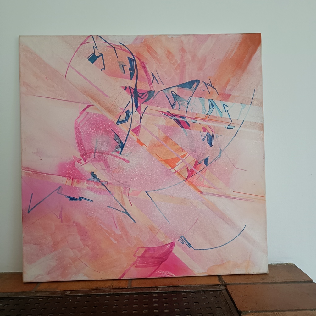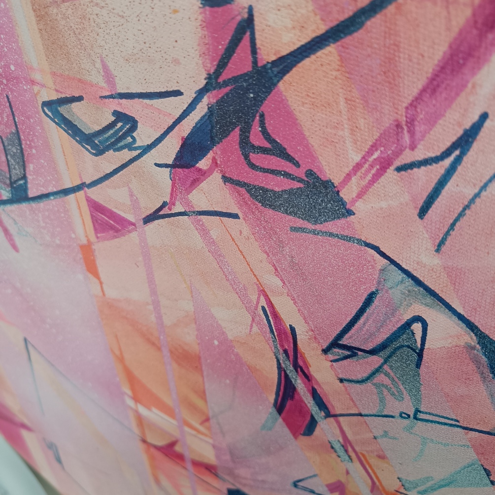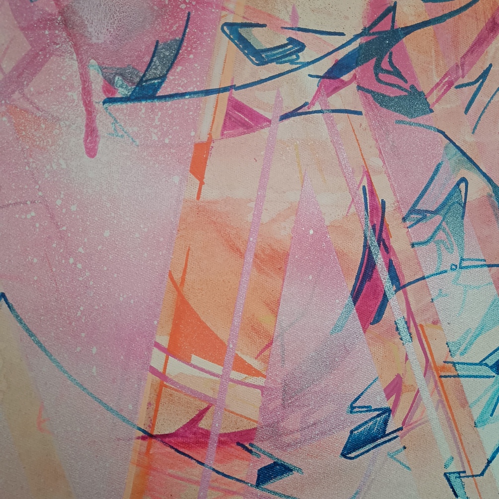 The work is produced only with spraycans - no initial sketch, and came into being with carefulness & control.